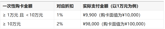 虽然沃尔玛于2025年4月起取消了“通用购物卡”的购卡折扣(即面向个人消费者常见的标准卡),但对于专属购物卡(也称企业定制卡),目前仍保留大额购卡折扣: