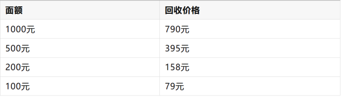 页面会显示当前各面额回收价格(如上图所示,79折);