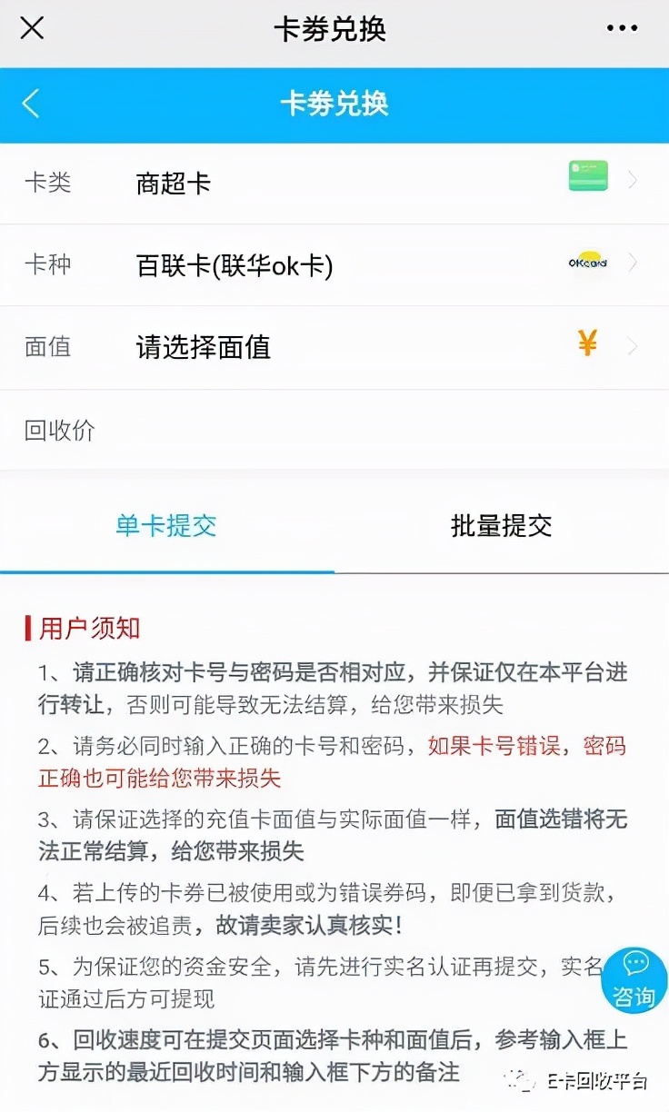 目前有许多的网上平台是专门回收各类的购物卡、会员劵啊等等,可回收的种类很多。这类平台各种证件齐全,经过各种认证,安全便捷,操作简单,回收的折扣也是比较良心的,下面我就以E收卡平台作为例子,图文并茂,一目了然,让您足不出户,就可以轻轻松松把手里闲置的购物卡换成现金。